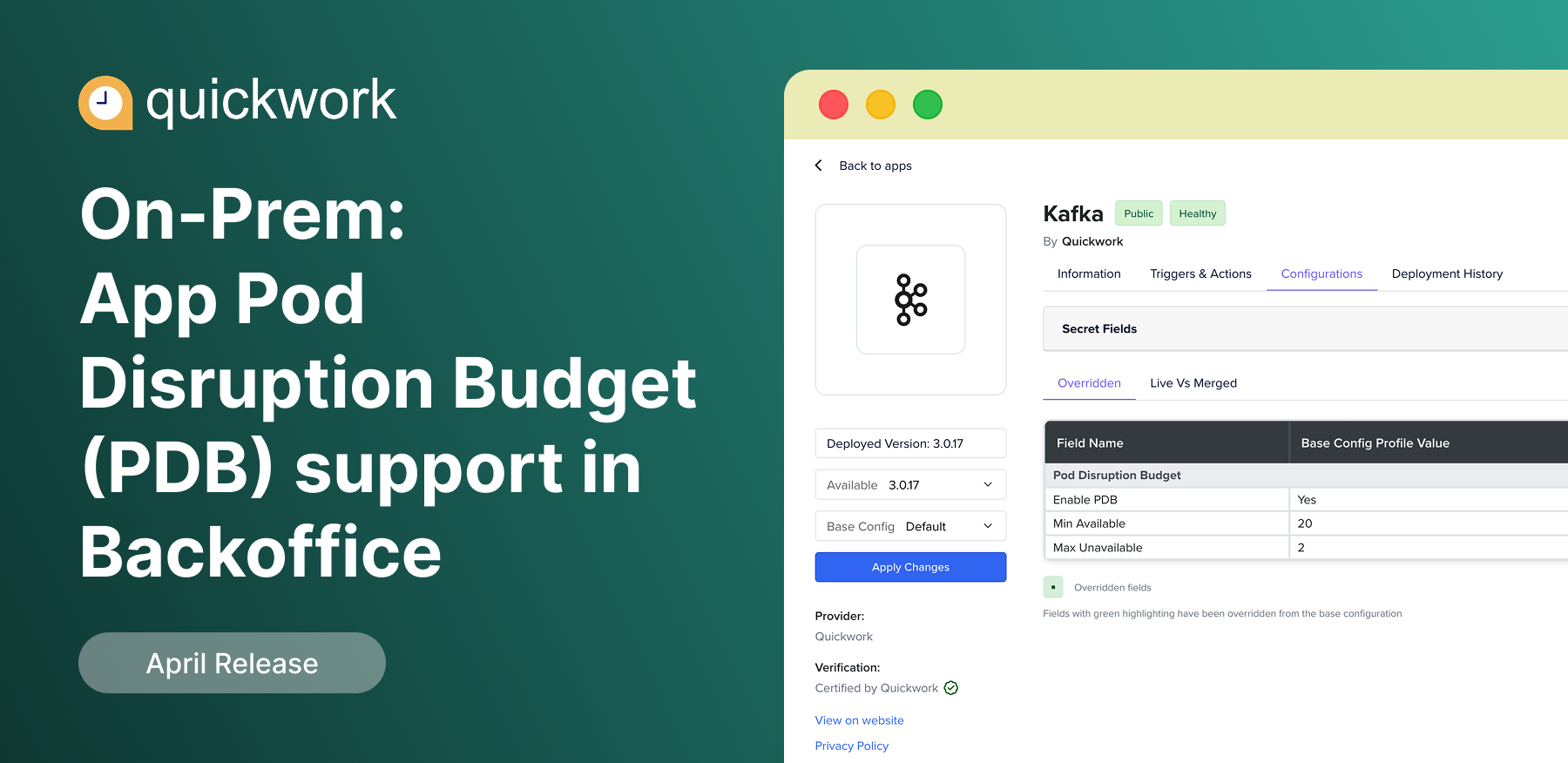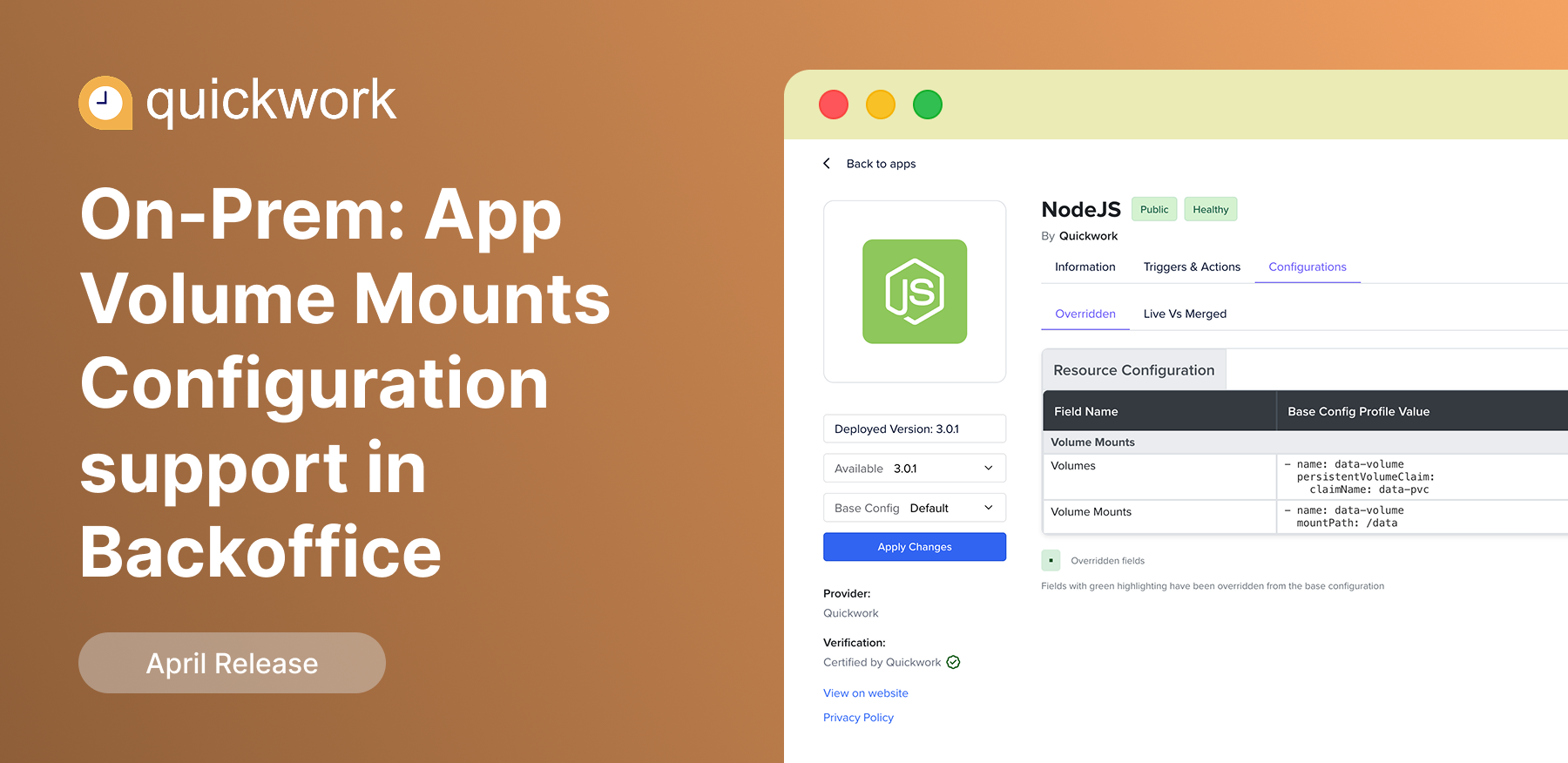 Volume mounts configuration is now available through intuitive UI components in Backoffice, making it easier to define and manage volumes and volumeMounts. This enhancement enables seamless persistent storage and configuration mounting, improving flexibility and reliability for your applications.