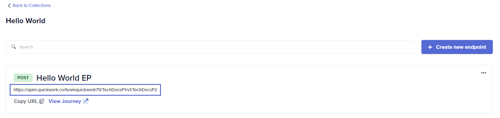 - The endpoint is accessible at the specified URL as shown below. Click on Copy URL to copy the endpoint URL.