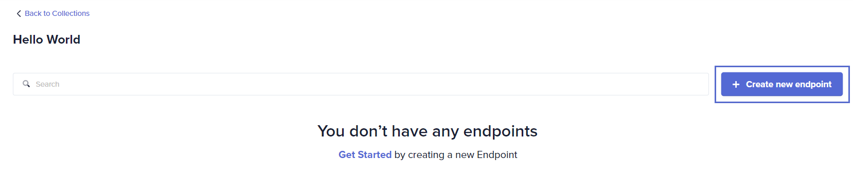 - Click + Create a new endpoint. If you don’t have any endpoints, click on Get Started to create a new Endpoint link.