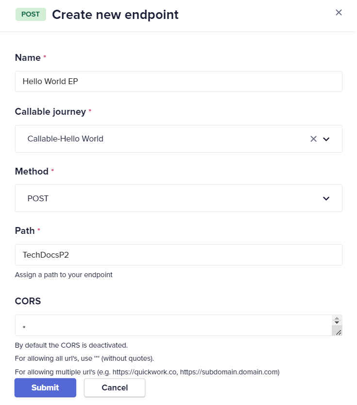 This section outlines converting a callable journey into a fully functional API endpoint using Quickwork's API Management tool.