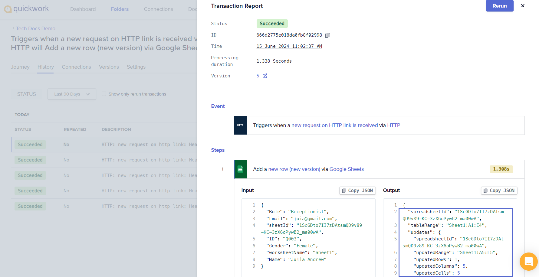 - Return to Quickwork to check the journey’s execution under the History tab.