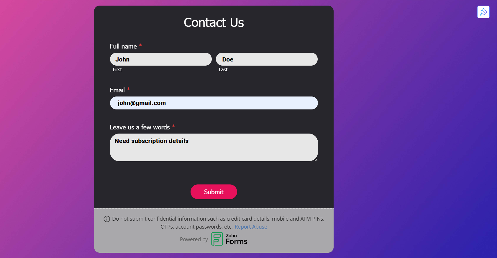 - Access to a Zoho Forms account with ability to create or modify forms.