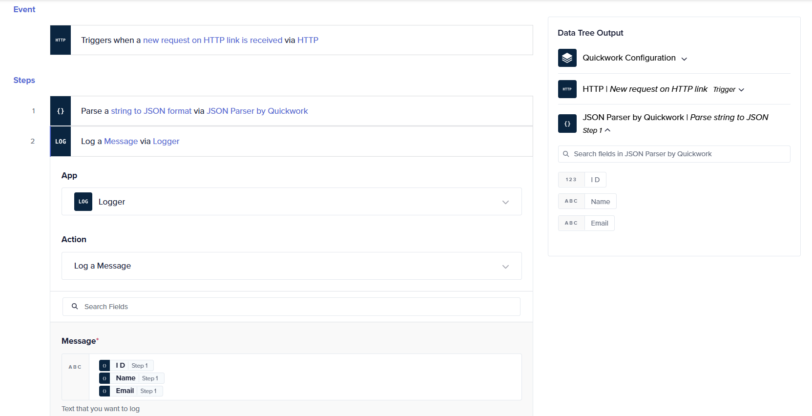 The JSON Parser by Quickwork is a built-in utility that enables you to convert JSON strings, raw text, or other complex structured inputs into readable key–value pairs within a workflow. It is especially useful when dealing with HTTP API responses, CSV conversions, webhook payloads, or nested JSON objects where data needs to be extracted, mapped, or reformatted.