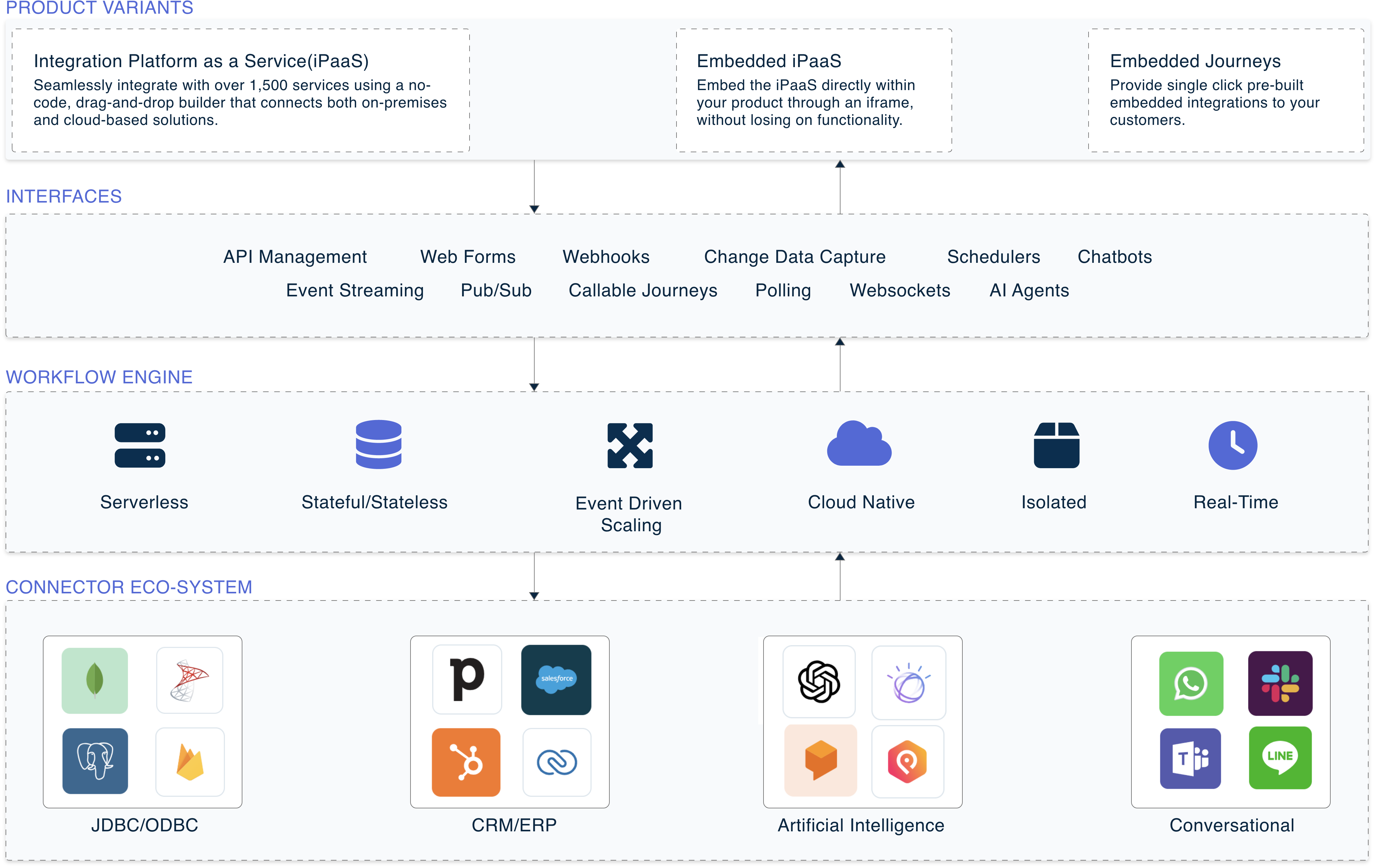 Quickwork understands that the integration needs of larger organizations differ significantly from those of individual users and smaller businesses. To address these diverse requirements, Quickwork offers an extensive product assortment, including a full-featured iPaaS, Embedded iPaaS, and Embedded journeys. This variety enables enterprises to seamlessly integrate workflows within their internal processes or directly into their products, offering flexible options for different business models. Quickwork also provides deployment flexibility, operating on the cloud across various regions, within self-managed environments, managed VPCs by Quickwork, and even in air-gapped modes. These options allow enterprises to select a model that best aligns with their operational and security requirements