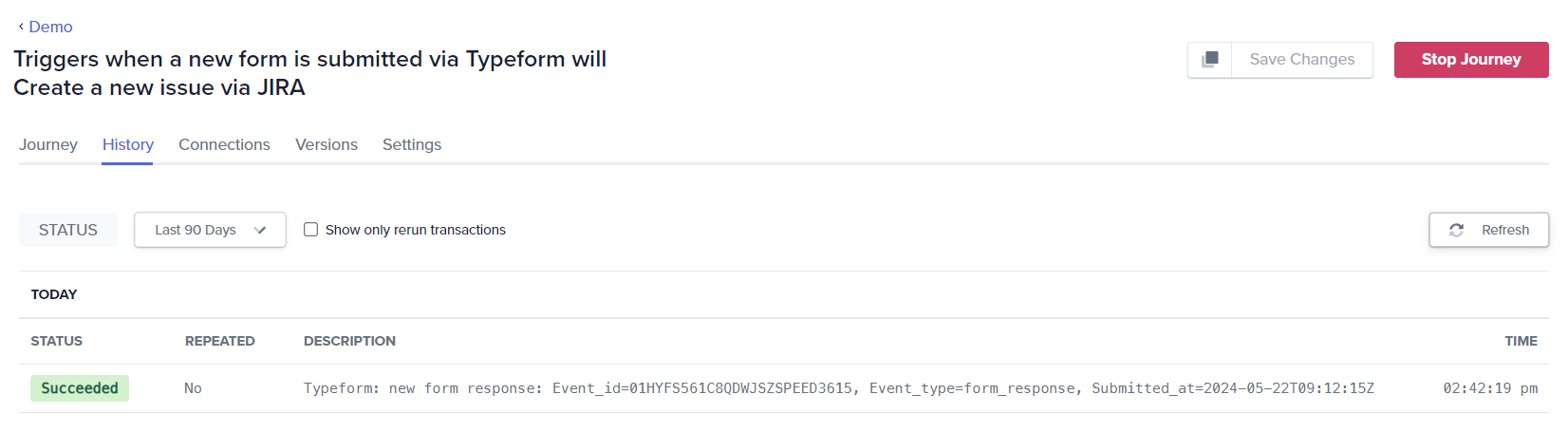 This confirms that your journey is successfully automating the process of creating JIRA issues based on customer feedback on Typeform.