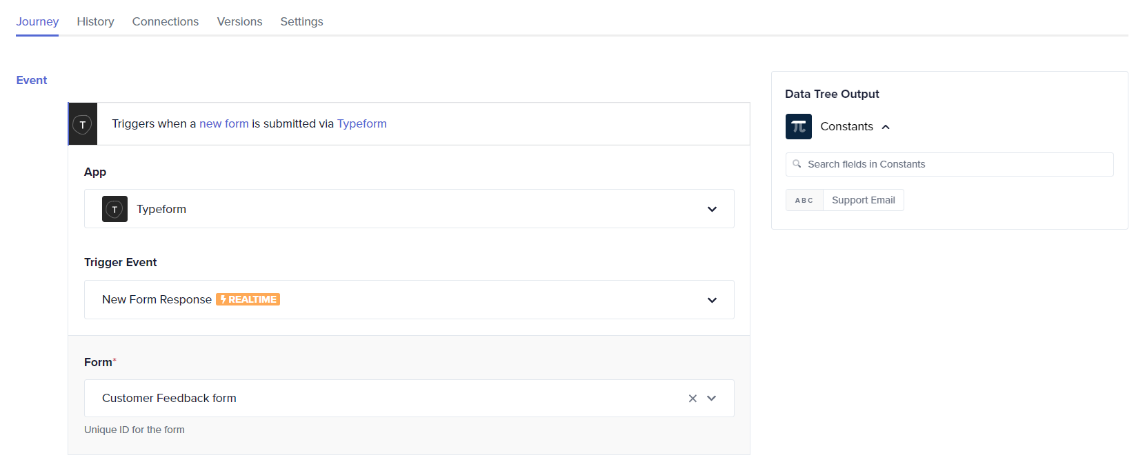 - Overview: Consider a scenario, we are automating customer feedback processing into support tickets directly. The journey will automatically create an issue in JIRA for every new feedback submission from Typeform. Here,
