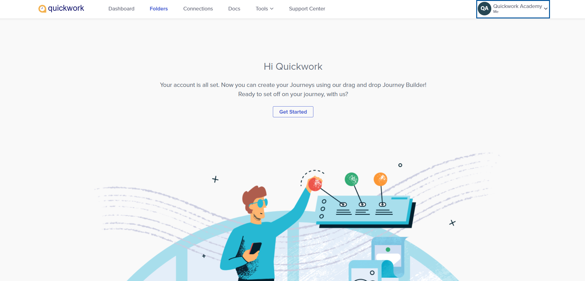 This guide walks you through the key steps to get started with Quickwork, from accessing your account to creating your first automated workflow (journey).