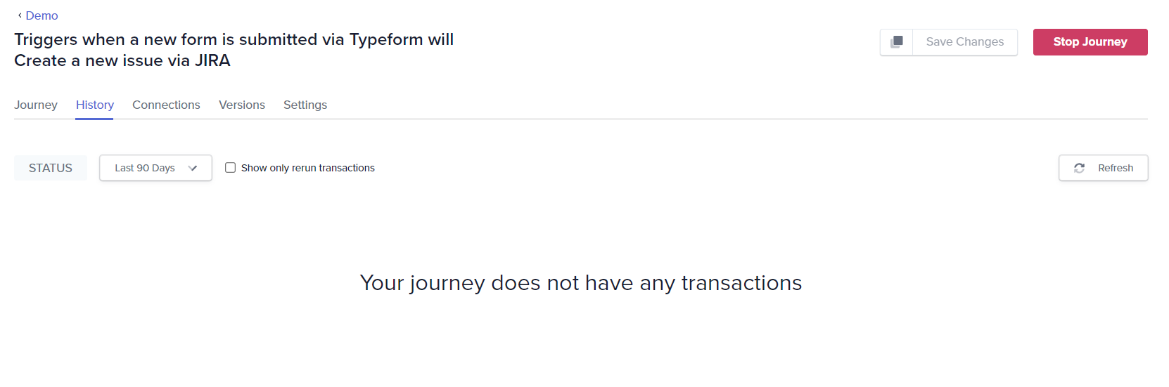 - You will be redirected to the History tab but will initially be empty, where you can monitor the journey once it's triggered by new feedback.