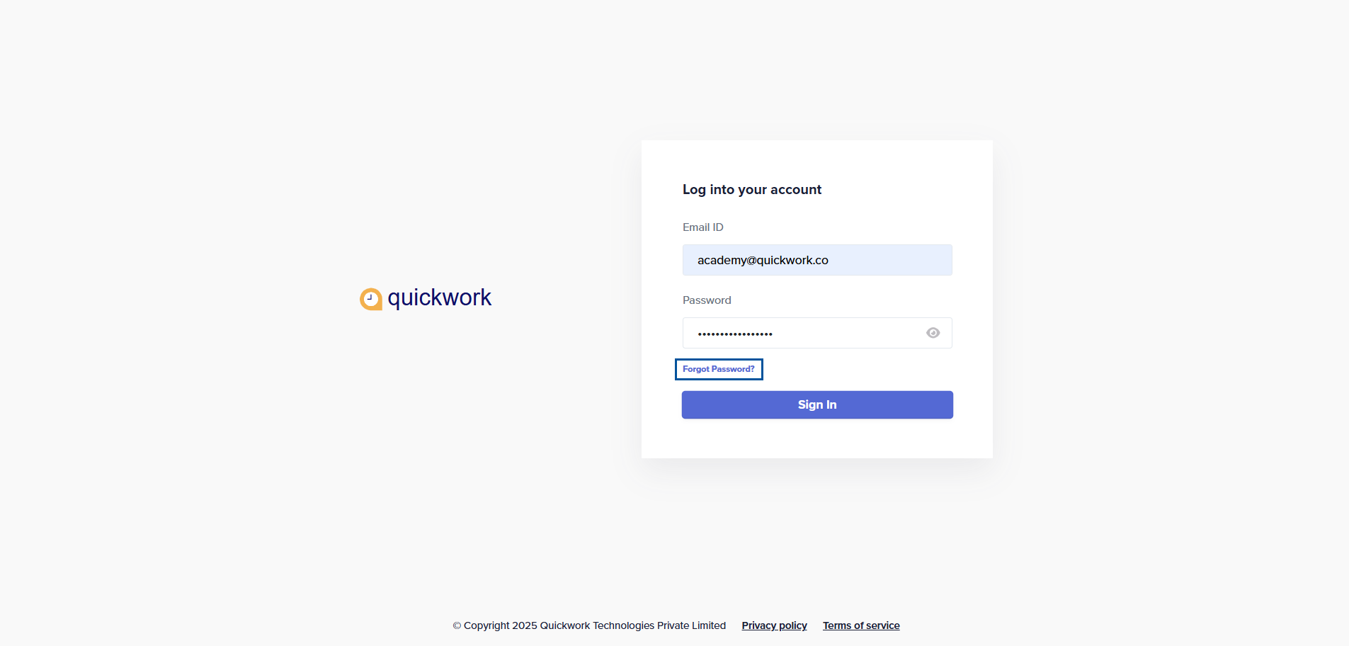 If you are unable to log in because you have forgotten your password, Quickwork provides a secure way to reset it.