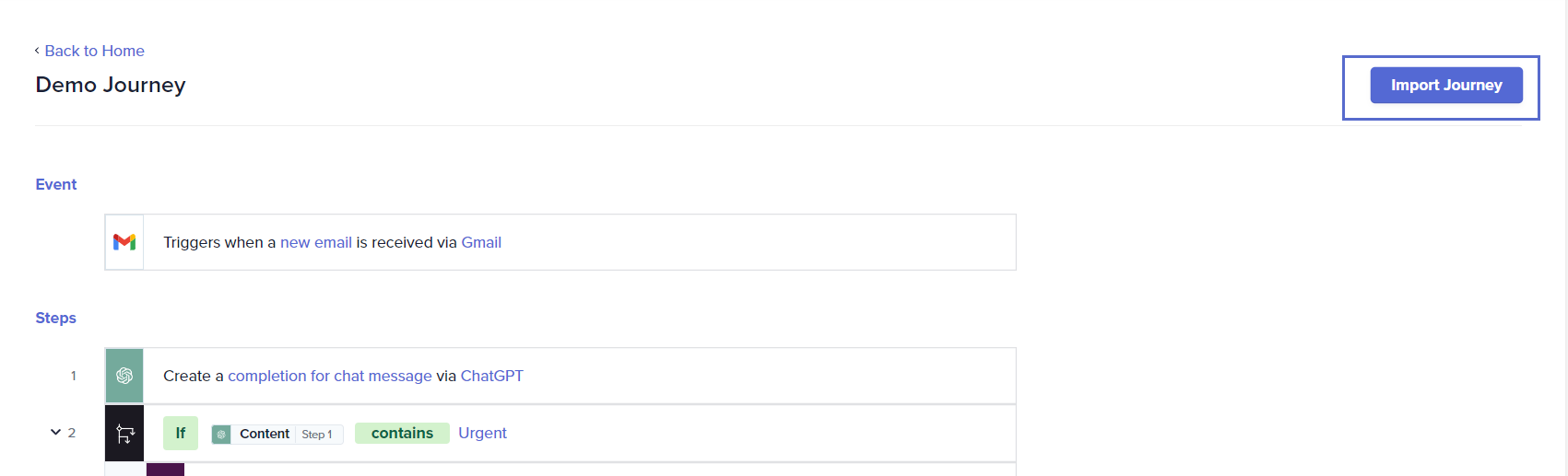 - To create a replica of the shared journey in your account, click the Import Journey button.