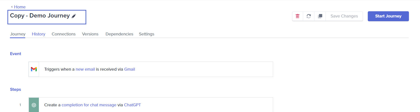 After establishing the necessary connections, you can edit and execute the journey as required.