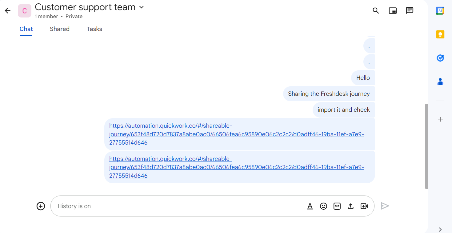 Accessing a shared journey in Quickwork allows you to quickly import and start using a journey created by someone else. Here is how you can access and use a shared journey.