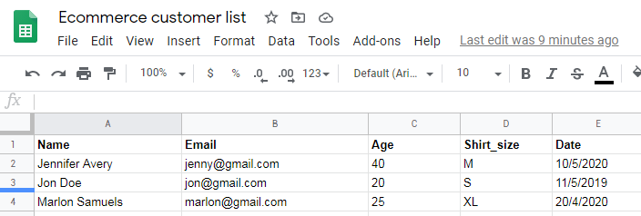 Search users by email address | Select * Where B = '[email protected]' | Retrieves all information for users with the email [email protected]. B is the column header for Email. |