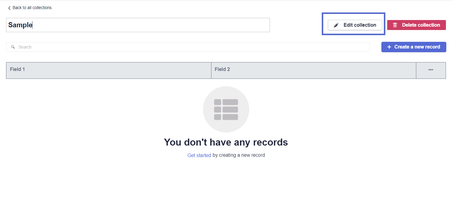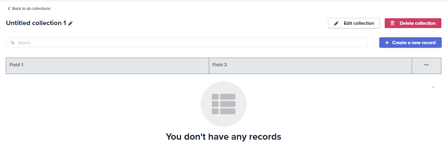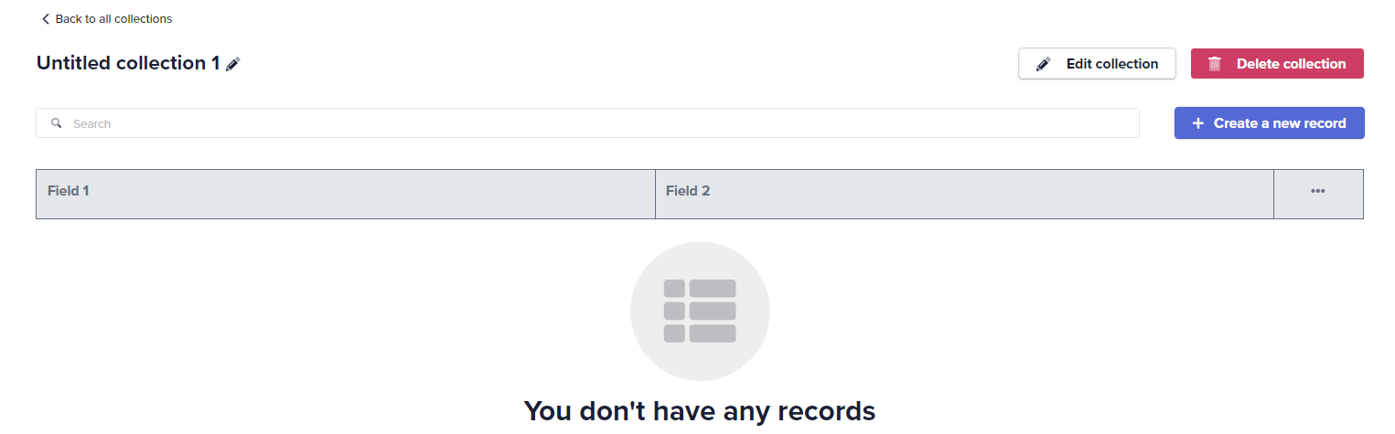 You can add new records by clicking the + Create a new record button and entering data into the fields provided.